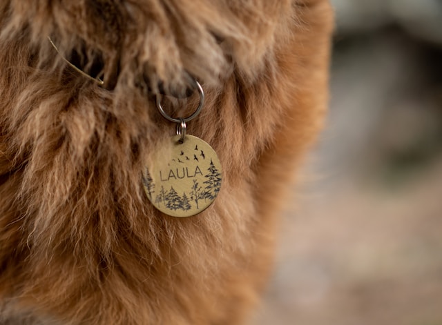 Chapita identificativa personalizada para tu mascota en aluminio anodizado. Ligera, resistente y con grabado láser permanente.